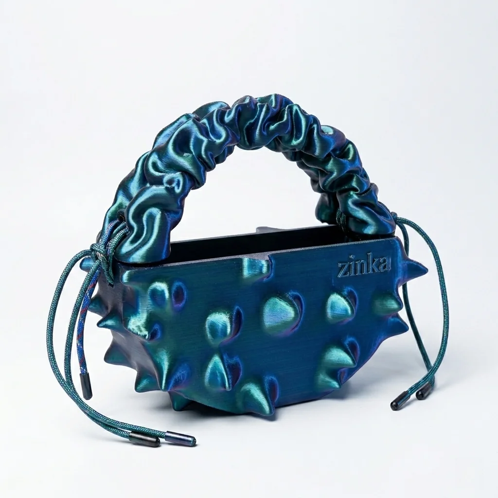 Все изделия мы печатаем на 3D-принтере и дорабатываем вручную. Печать пластиком даёт формы, которые нельзя сшить. Цвет — под запрос. Каждое изделие — штучное. Это слаженная работа машины и живого человека — именно поэтому каждая сумка для нас не просто товар, а ценный предмет, наше дитя, арт-объект.